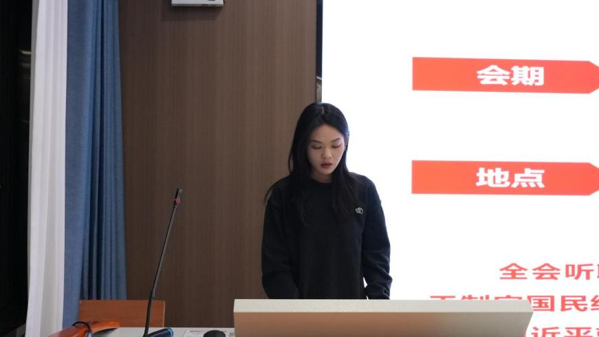 组织部赵可同学结合全会精神,回顾了“十四五”时期的发展成就及历史意义,详细解读了“十五五”规划中,以推动经济高质量发展为核心,聚焦创新驱动、绿色低碳、智能化转型等关键领域的重大部署及实践要求。