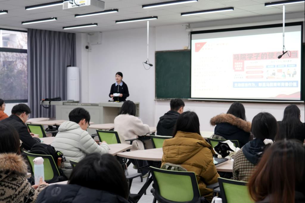 最后,龙雯静老师作会议总结。她强调,学习贯彻全国两会精神是当前一项重要任务,理论学习应常态化、制度化。勉励学生干部坚守服务初心,深入调研了解同学所想所需,同时注重自身成长,做到胆大心细、系统创新,为服务同学、学院发展注入青春动能。